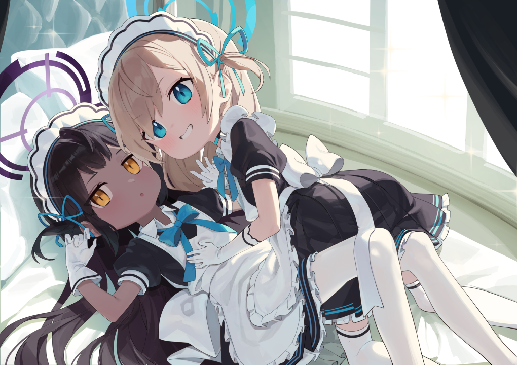 电子游戏人物、床上、动漫女孩、女仆、蓝色档案