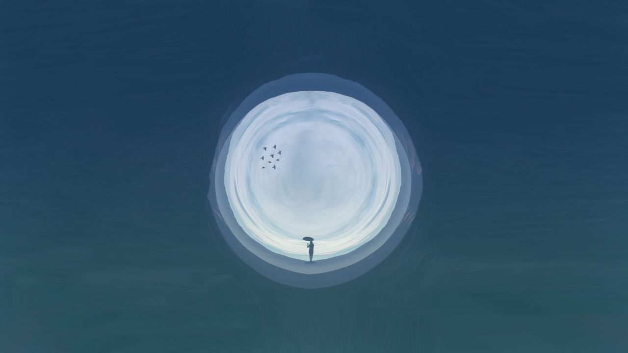 AI艺术、插画、创造力、伞、圈、极简主义