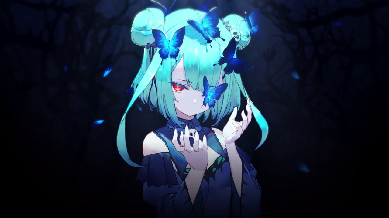 原创、人物、红眼睛、动漫、女孩、角、灰色头发、连衣裙