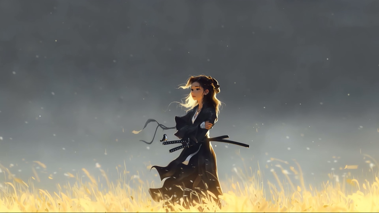 日落下的动漫女孩