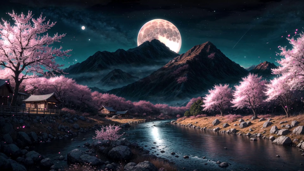 粉色、月亮、樱花