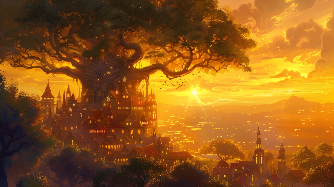 梦幻树屋:夕阳下的金色童话