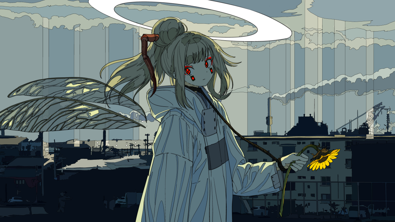 站立、虚拟、白色连衣裙、城市、景观、日出、连衣裙、动漫、女孩