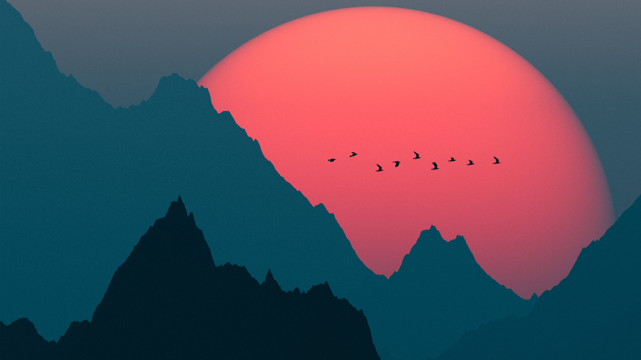 AI艺术、插画、风景、极简主义、山脉、阳光