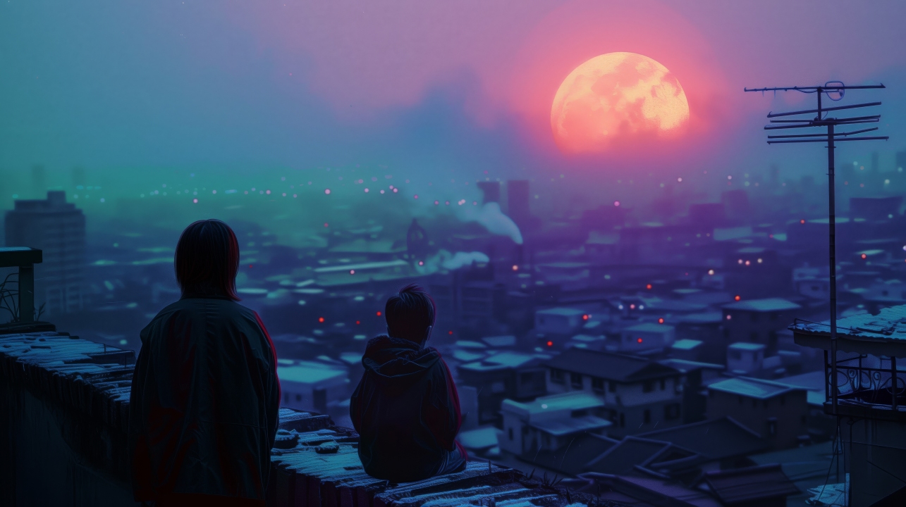 儿童、人工智能艺术、城市景观、云、太阳、污染、蓝色、城市