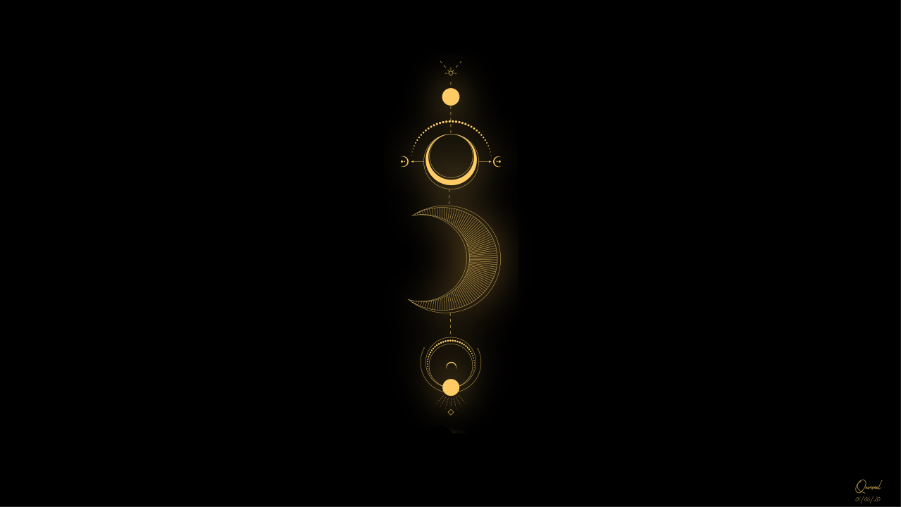 几何学、神圣、AI艺术、黑色背景、月球、太阳系、太阳、地球