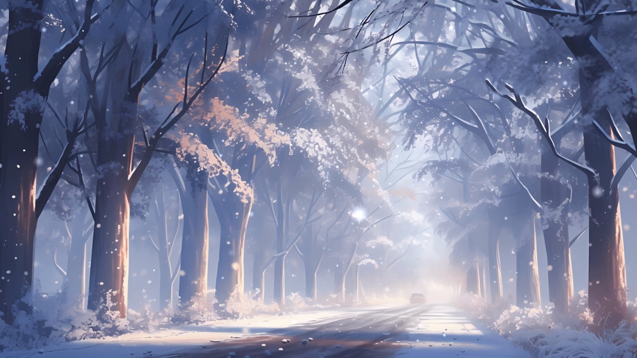 冰冻森林中的道路