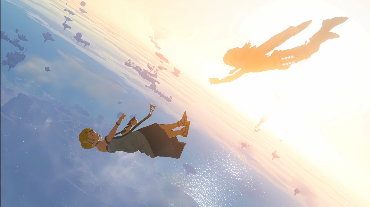 《塞尔达传说:王国之泪》中的角色在空中飞翔