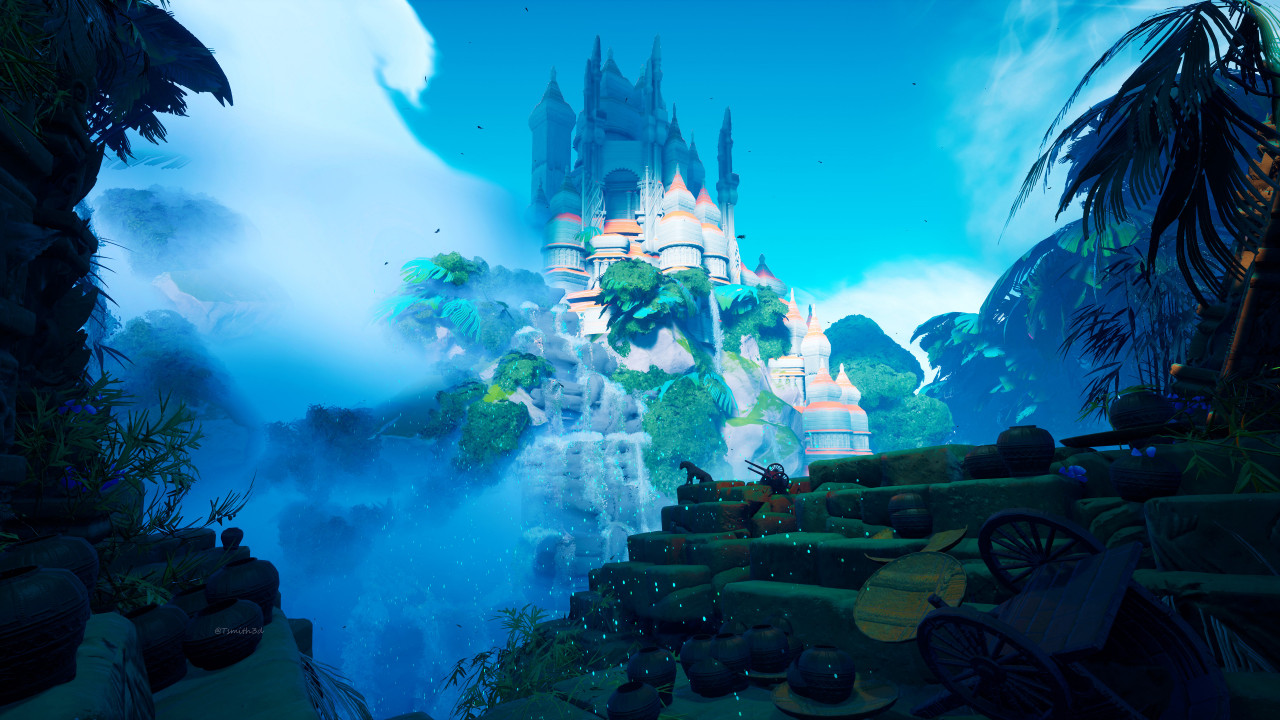 梦幻城堡与瀑布的奇幻风景