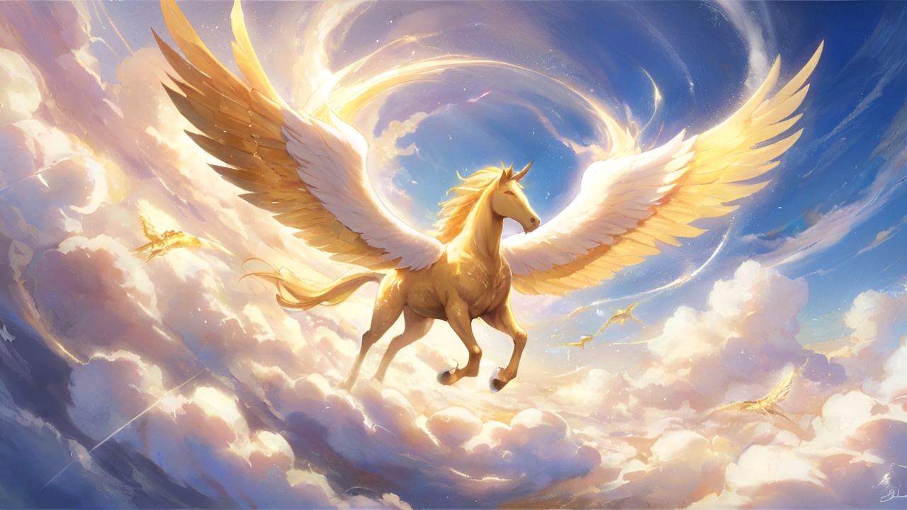 梦幻飞马:翱翔于云端之间的金色奇迹
