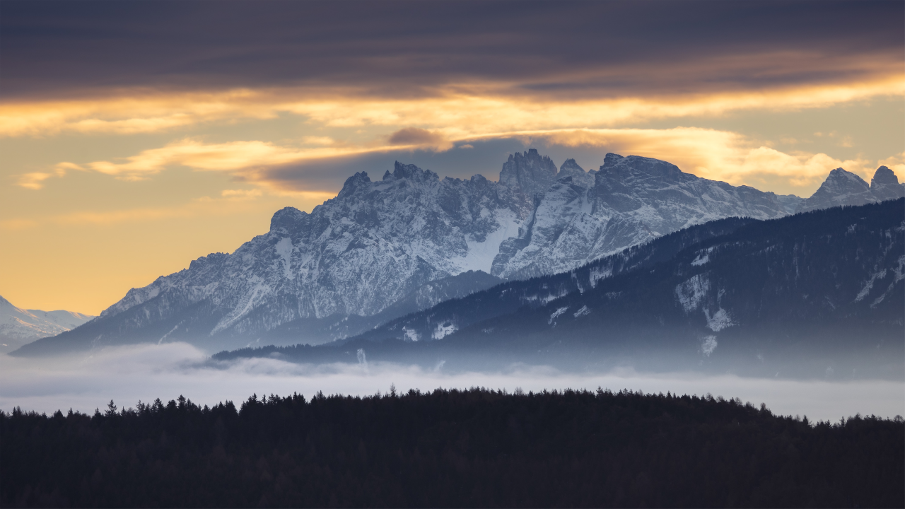 摄影、风景、日落、山、雪、云、自然、森林、天空