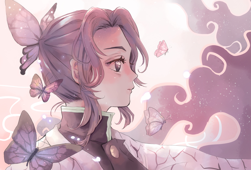 粉色、可爱的、蝴蝶、动漫女孩、二次元