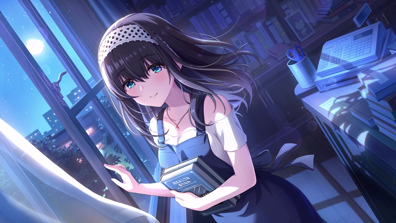 蓝头发、蓝眼睛、动漫、女孩、图片、简单背景、AI艺术、水、蓝色、蓝色背景