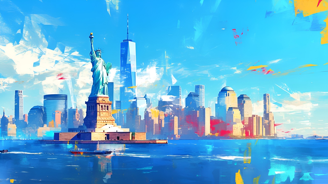 自由女神像下的城市风光