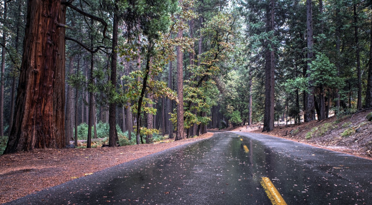 树、道路、红杉、松树、森林、沥青、户外、植物