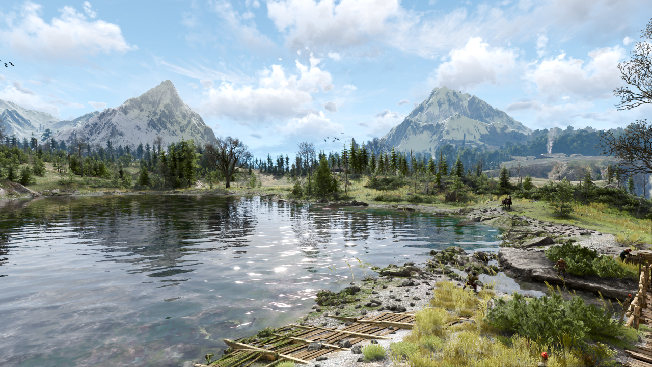 巫师、狂野狩猎、水、游戏CG、树、天空、云、雪、山、自然、风景
