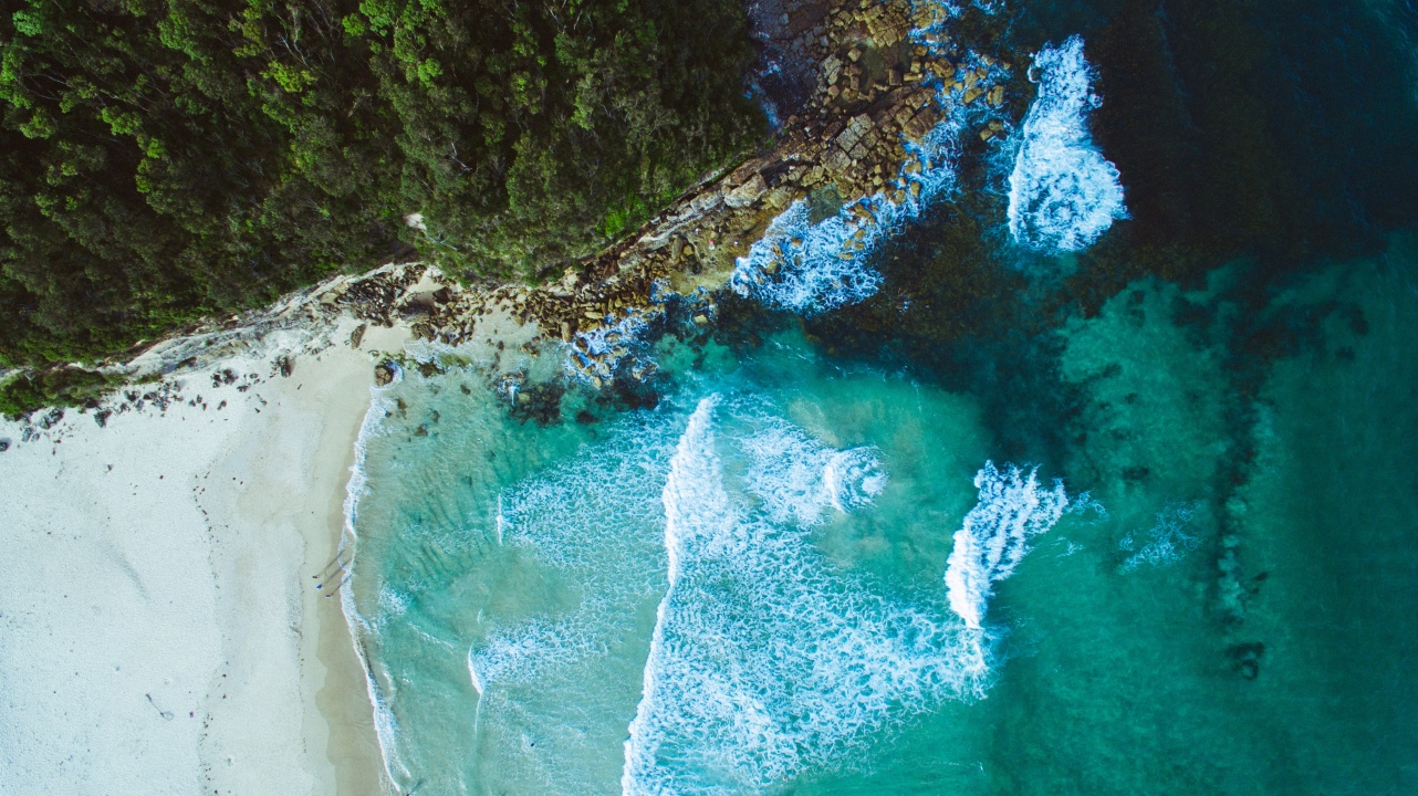 自然、水、海滩、树木、鸟瞰