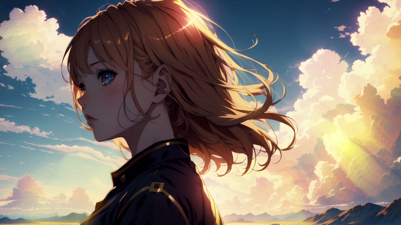 靠近山脉的动漫女孩