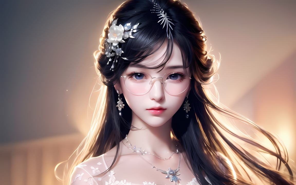 亚洲、女人、长发、艺术、眼镜、耳环、珠宝、项链