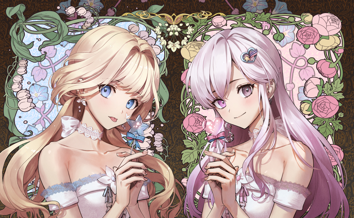 动漫、女孩、棒棒糖、长发、花朵、绘画、艺术
