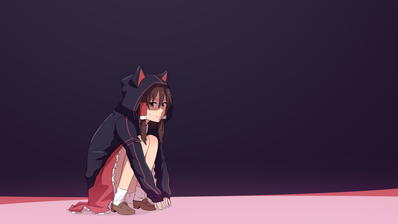 黑发、动漫女孩、猫耳朵、头巾、动漫、紫色