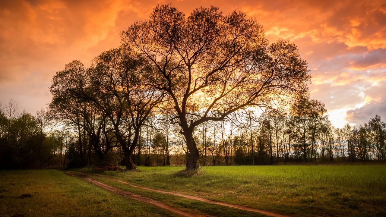 树木、景观、自然、日落、森林、草坪、绿色