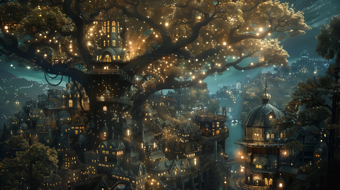 梦幻森林之城:光影交织的夜晚