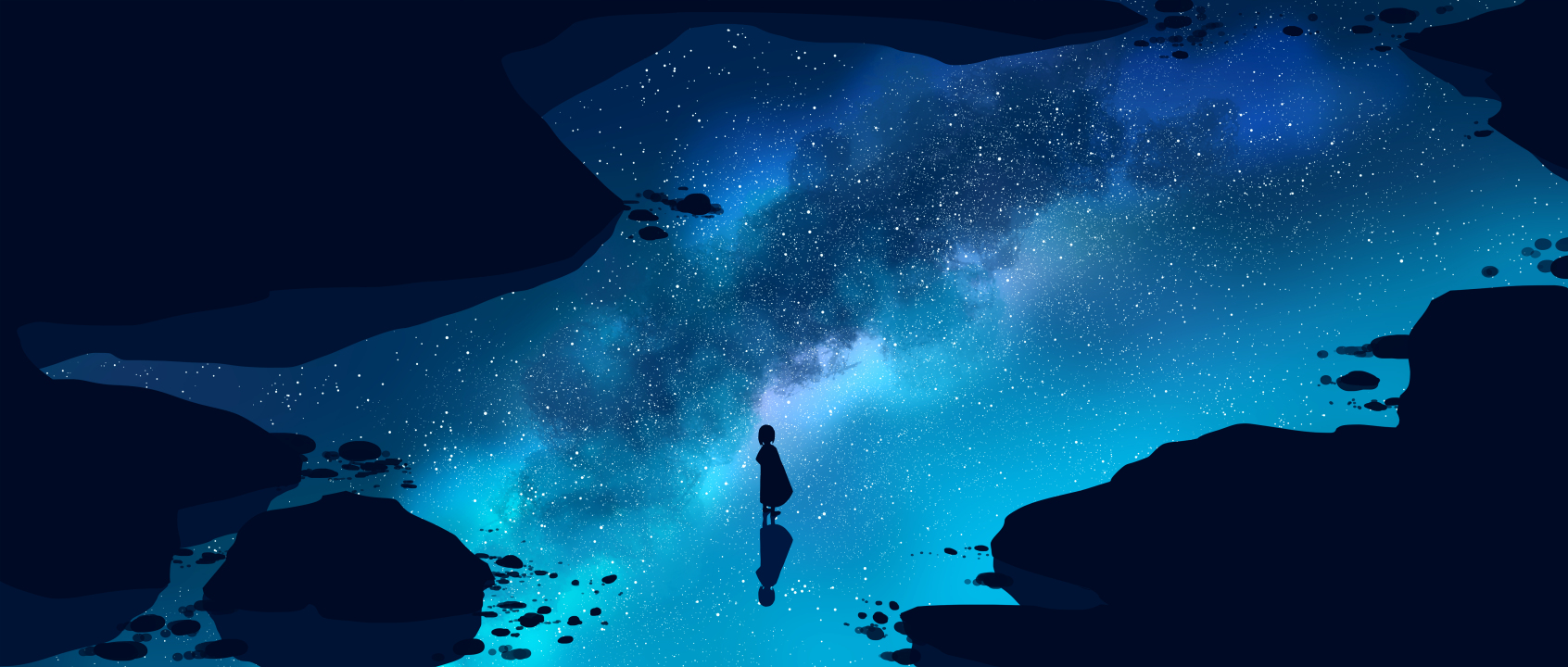 优雅、动漫、天空、女孩、星星、星景、简单背景、极简主义