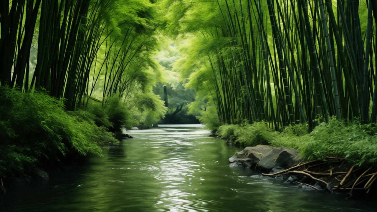 梦幻城市中的宁静河流