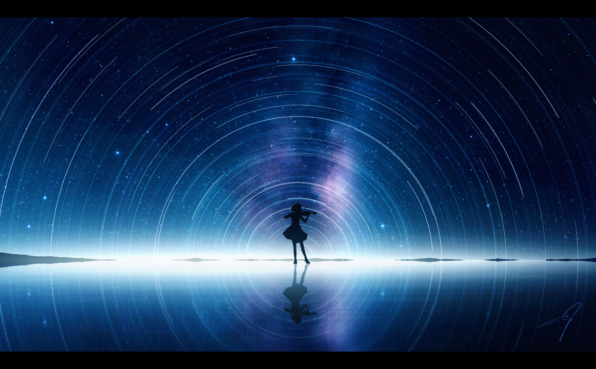 动漫、女孩、明星、小提琴、治愈、星空