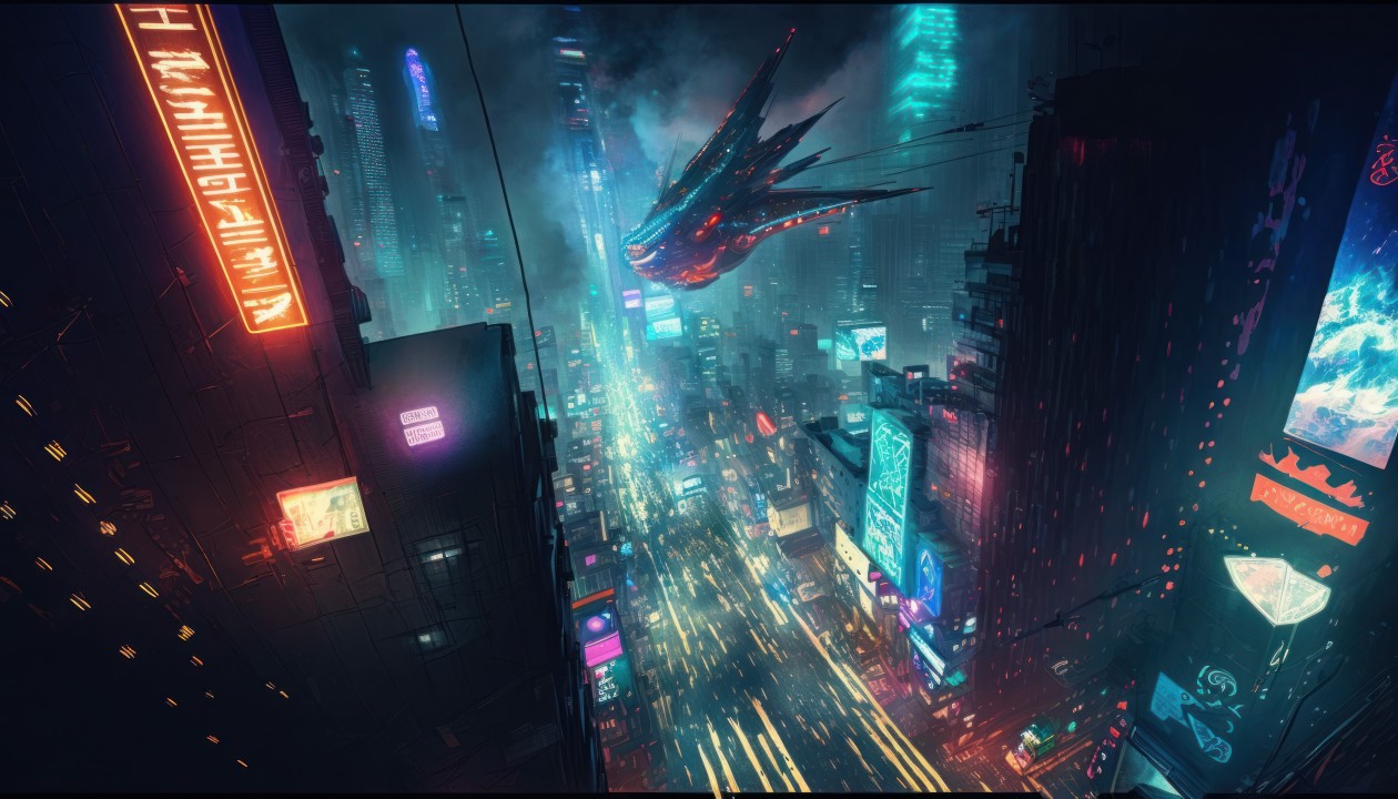 未来都市的赛博朋克夜景