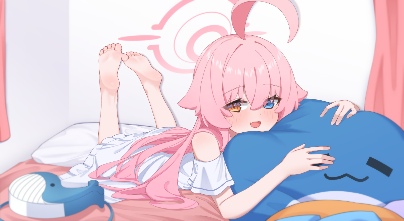 粉红色的头发、长发、脚、动漫女孩、白色背景、异色