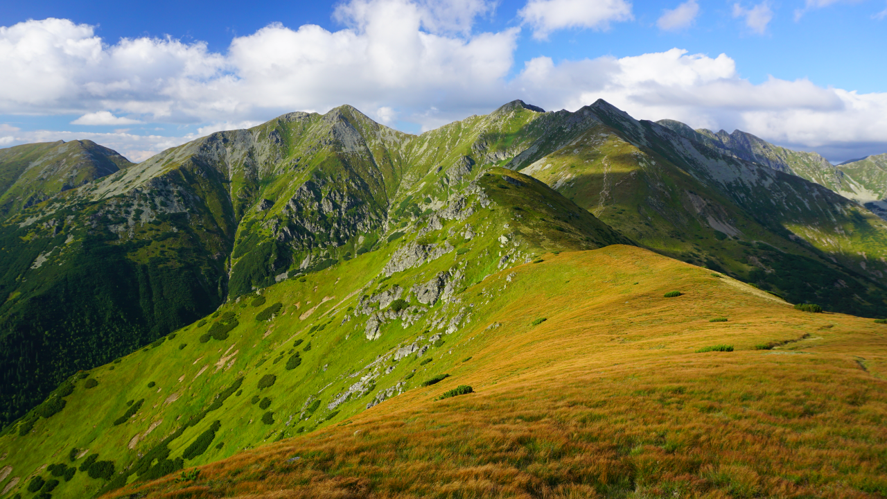 自然、风景、山、草、岩石、天空、云、阳光、田野