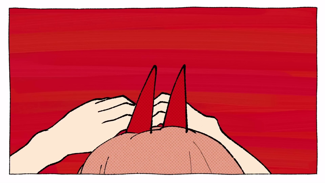 红眼睛、吐舌头、张嘴、动漫女孩、剪刀、面具