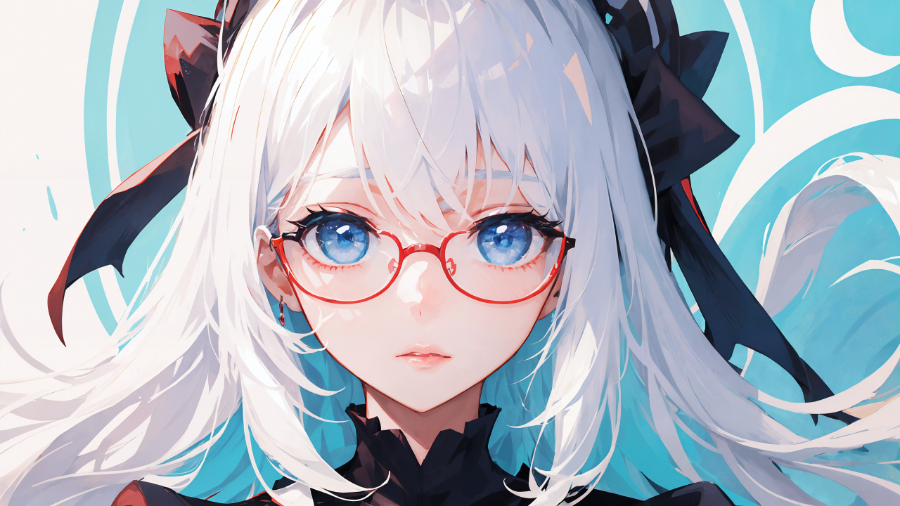 脸、长发、白发、蓝眼睛、动漫、动漫女孩、艺术、眼镜