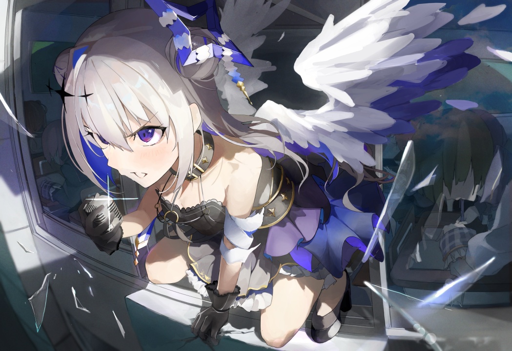 虚拟、全息、天使、动漫、女孩、翅膀、手套、脸红