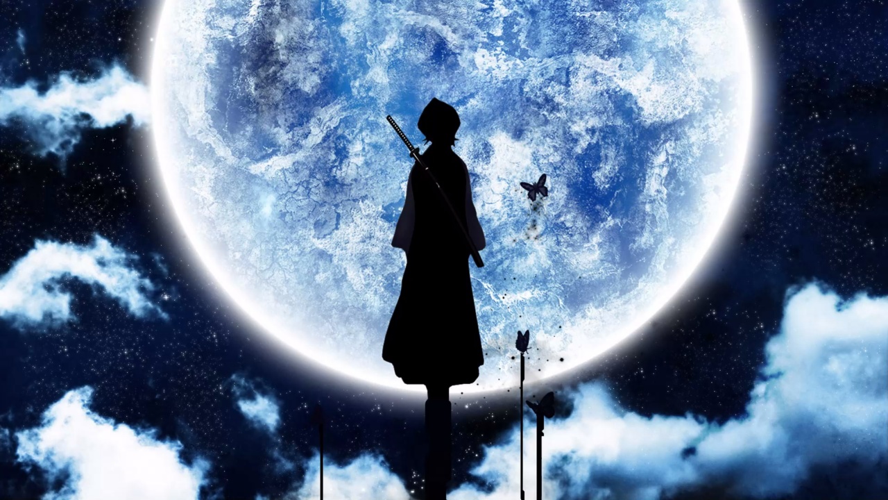 月亮、蝴蝶、武士、动漫 自然、日漫