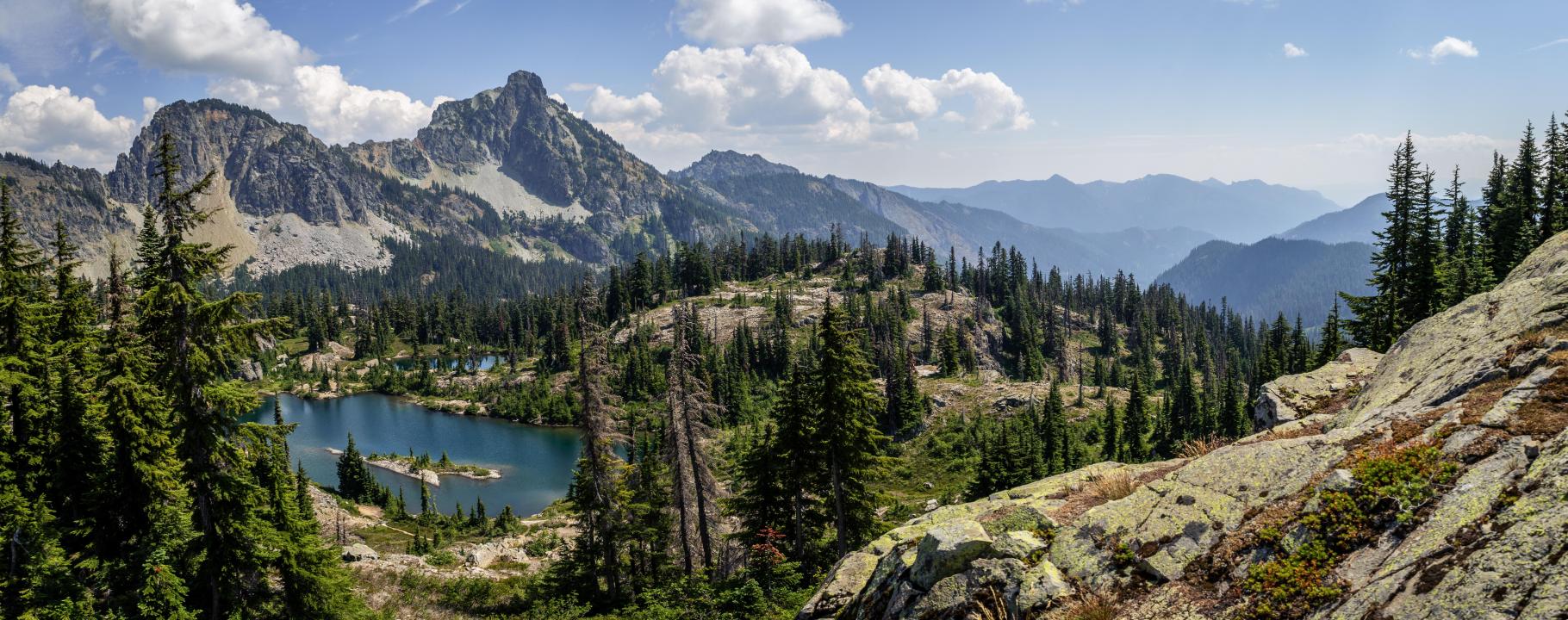 森林、山景、山脉、自然、景观、云、湖泊、悬崖、岩石