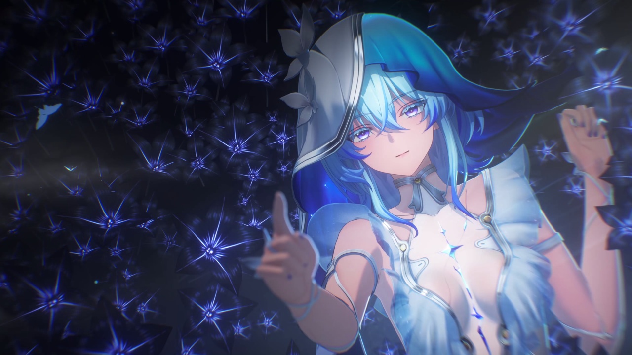 星辰之梦:梦幻蓝发少女与星辉交织的夜晚