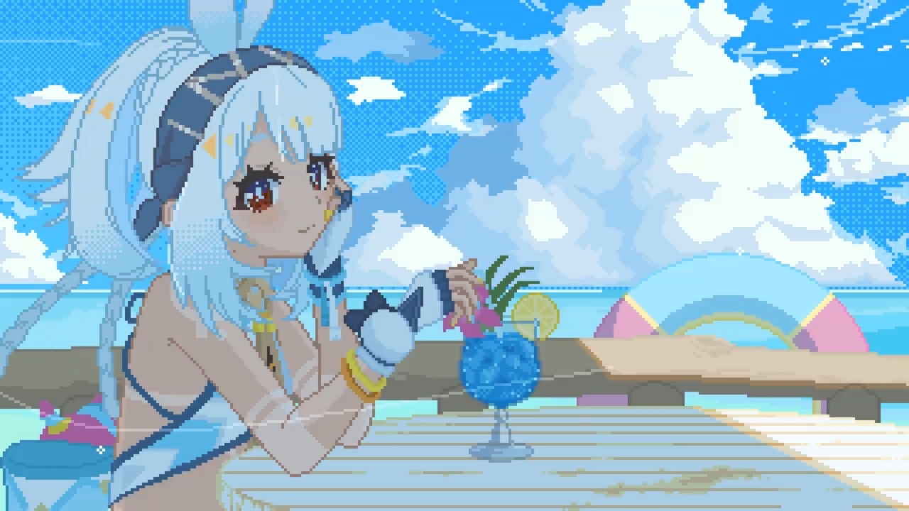 鱼塘、可爱的、蓝色、动漫女孩、二次元