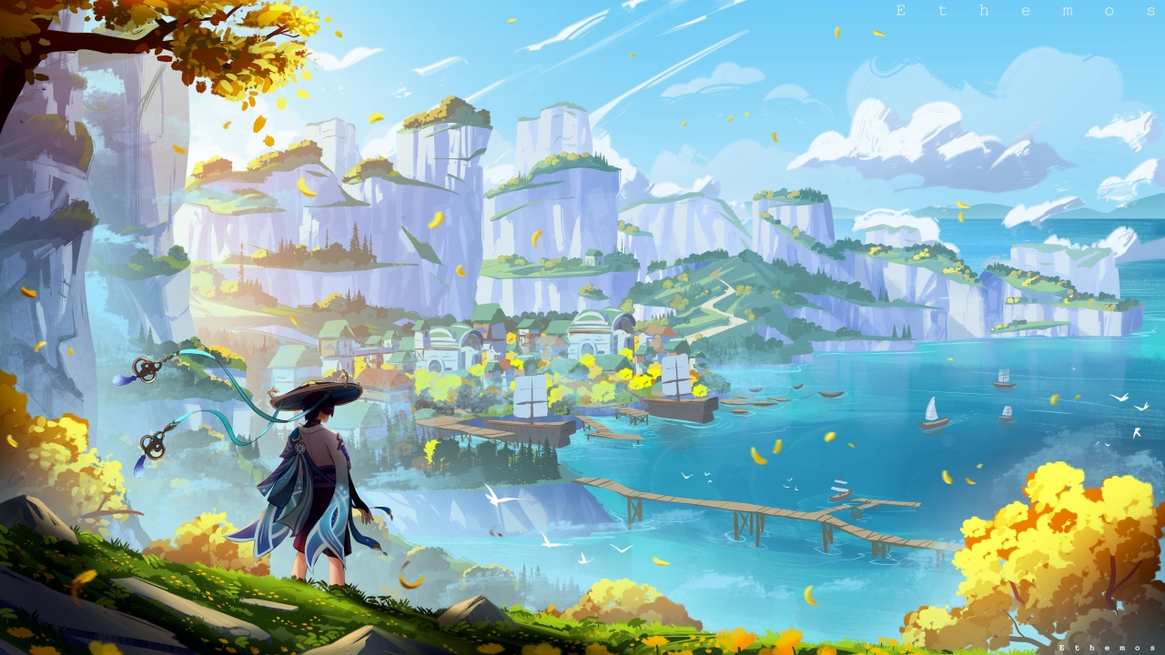 AI艺术、插画、风景、奇幻艺术、山脉、自然、村庄、原神