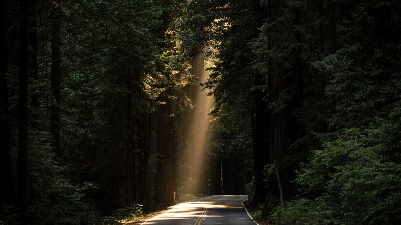 阳光透过森林的宁静小路