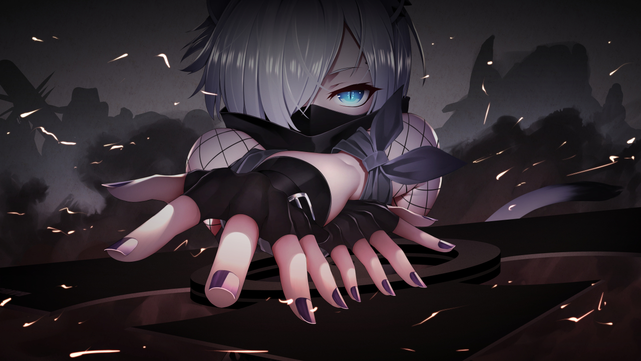 明日方舟、动漫女孩、面具、动漫、AI艺术