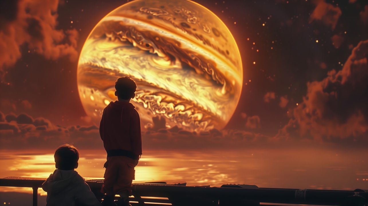 友谊与探索:儿童与人工智能艺术中的木星之旅