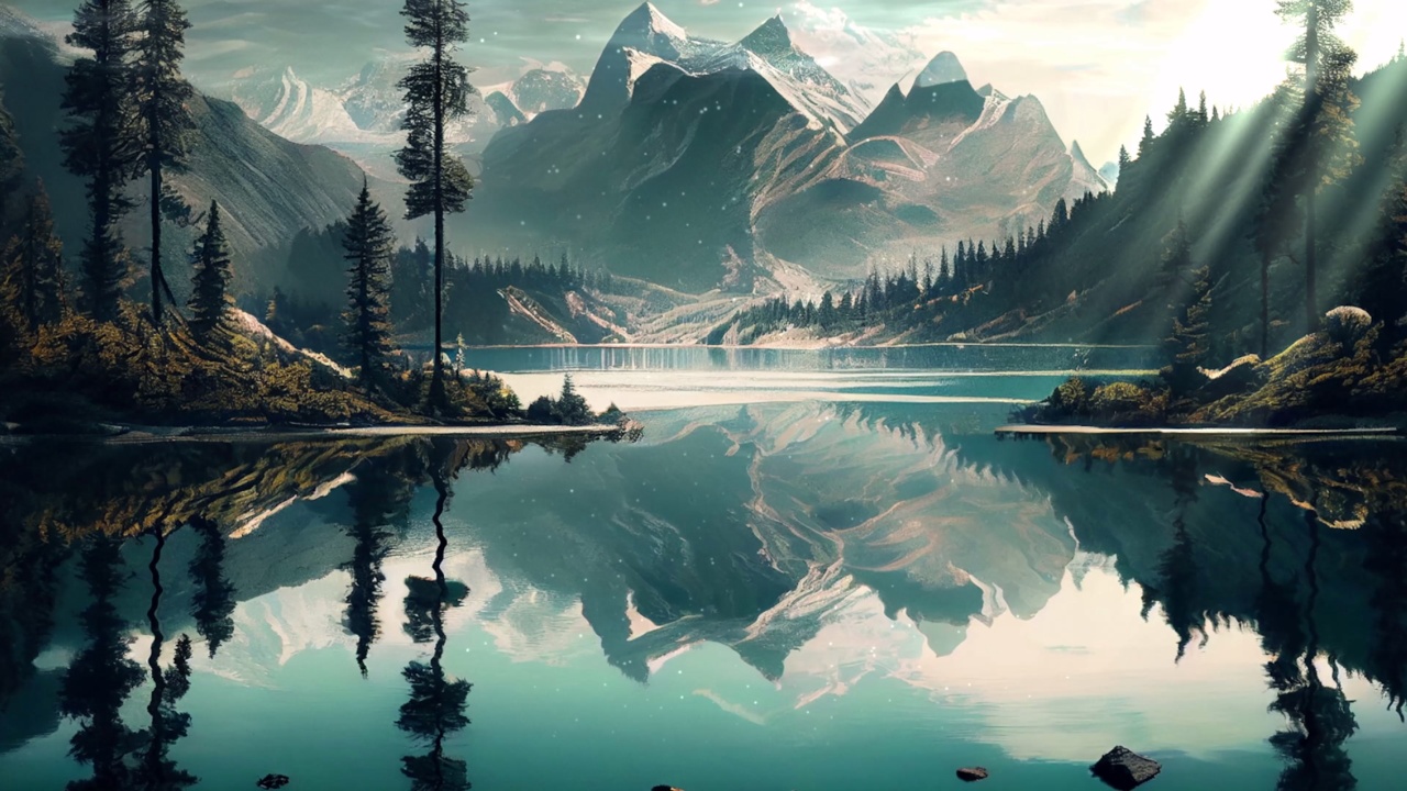 插图、数字绘画、风景、自然、山脉、日落、太阳、云、天空、绘画