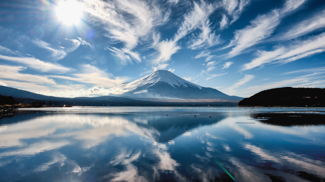 自然、风景、云、天空、太阳、湖泊、倒影、鸭子、树木、山丘、光线、镜头、耀斑、水、波纹、湖