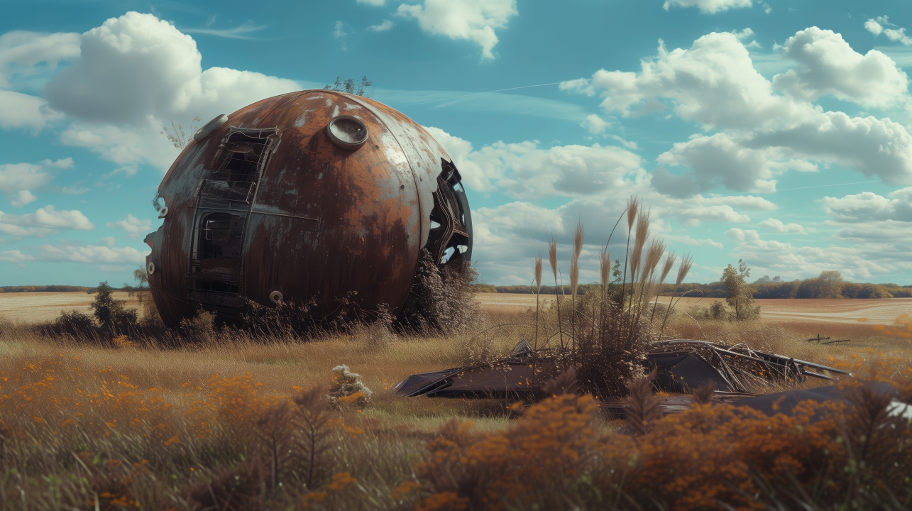 AI艺术、插画、垃圾、铁锈、云、田野、概念艺术