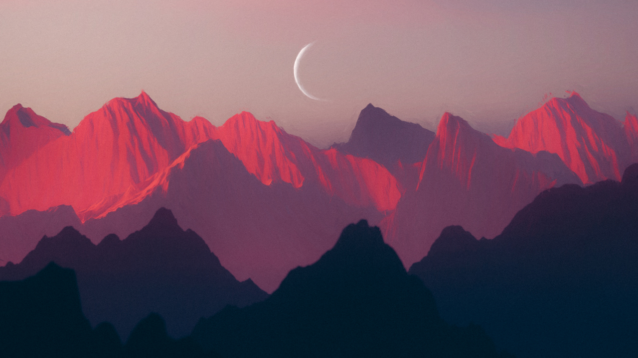数字艺术、艺术品、插图、数字、绘画、风景、山脉、阳光、月亮