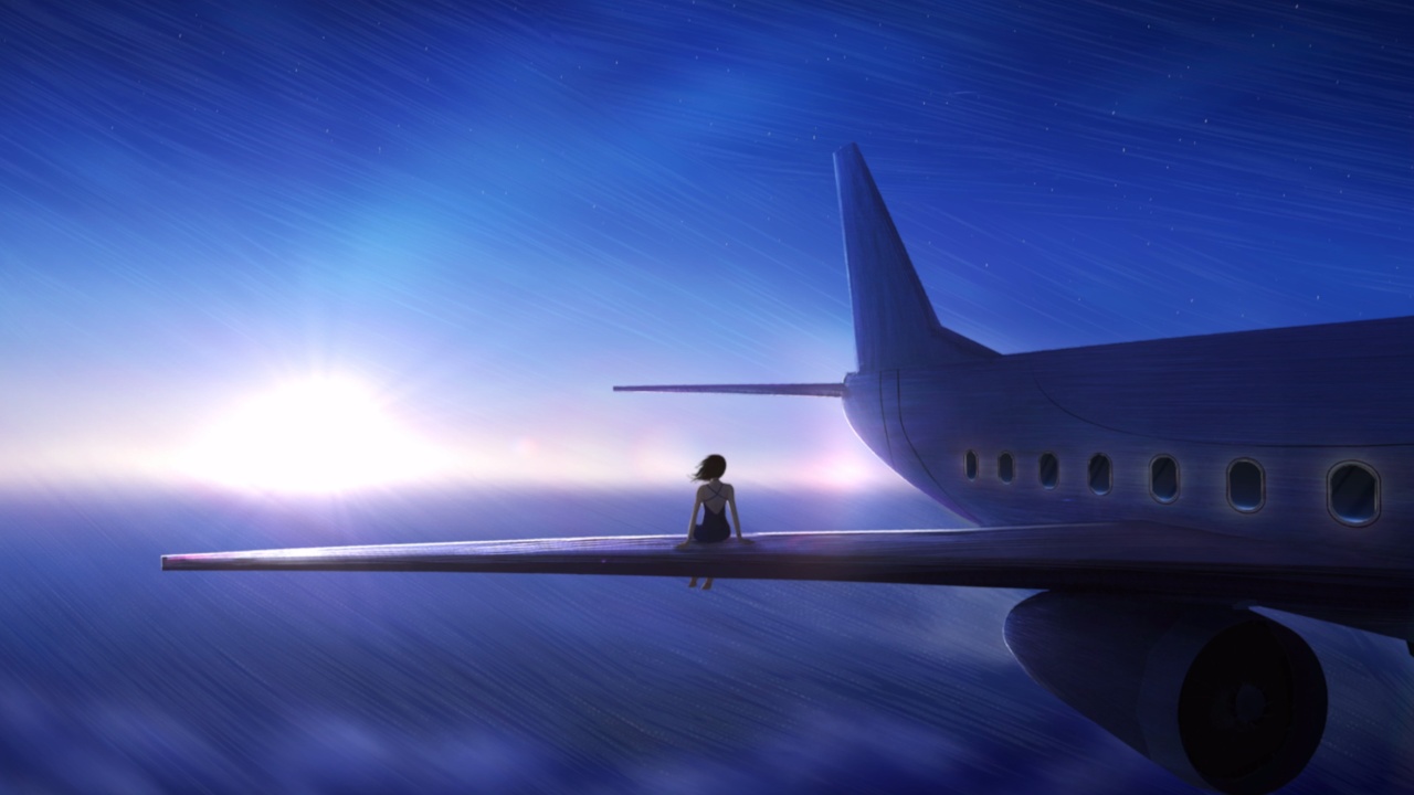 飞机机翼上的女孩