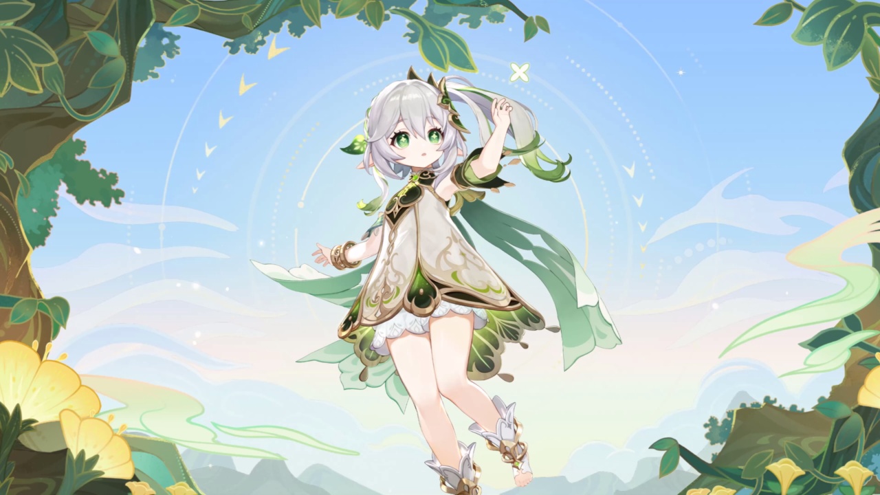 蓝头发、蓝眼睛、长发、动漫、女孩、原神、蝴蝶、鲜花、和服、花瓣、五颜六色